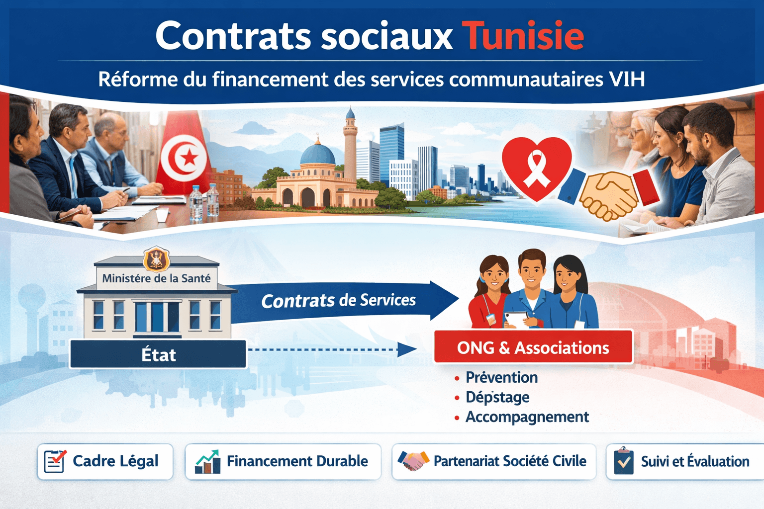 Les contrats sociaux Tunisie constituent aujourd’hui une réforme majeure du financement des services communautaires VIH. Pour la première fois, des ressources publiques sont mobilisées afin de permettre l’achat contractuel de prestations communautaires par le Ministère de la Santé auprès des organisations de la société civile. Il ne s’agit pas d’un simple mécanisme de subvention. Au […]